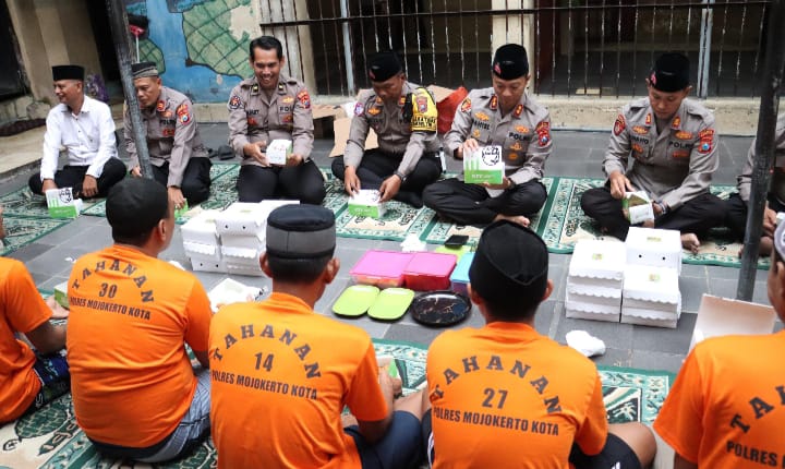 Suasana penuh kebersamaan terlihat saat Kapolres Mojokerto Kota duduk bersama tahanan menikmati hidangan berbuka puasa yang telah disiapkan. Kegiatan ini merupakan bentuk upaya Polres Mojokerto Kota dalam kepedulian terhadap masyarakat yang sedang menjalani proses hukum.(Ridwan)
