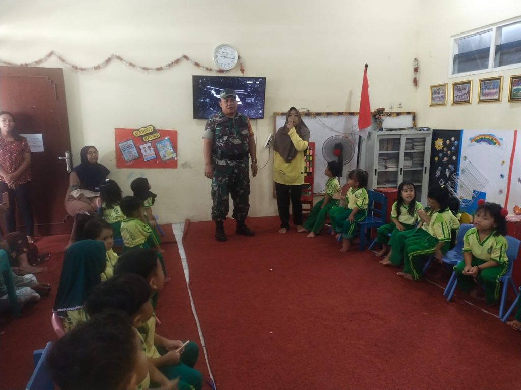 Surabaya, Liramedia.id – Babinsa Koramil 0830/03 Pabean Cantian memberikan wawasan kebangsaan (Wasbang) kepada pelajar Paud Usia Dini Rajawali, Kelurahan Tanjung perak (19/02/2025). Kegiatan tersebut bertujuan untuk membentuk karakter anak menjadi pribadi yang memahami ideologi Pancasila.