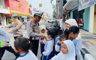 Bagikan Helm dan Snack, Cara Unik Satlantas Polres Mojokerto Kota Gelorakan Keselamatan Lalu Lintas