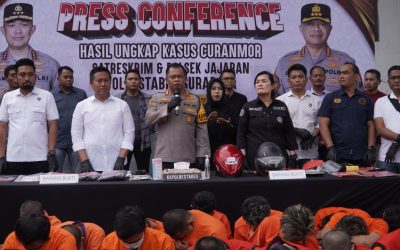 Surabaya,liramedia.id|| Kepolisian Polrestabes Surabaya mengungkap 70 kasus pencurian dengan kendaraan bermotor dengan 53 tersangka Dari puluhan tersangka itu, 11 di antaranya merupakan residivis kasus serupa.Kombes Luthfie Sulistiawan Kapolrestabes Surabaya memimpin langsung pengungkapan kasus curanmor ini. Ia menegaskan akan menindak tegas para pelaku yang semakin meresahkan masyarakat ini. “Hari ini kita merilis ada 70 kasus yang…