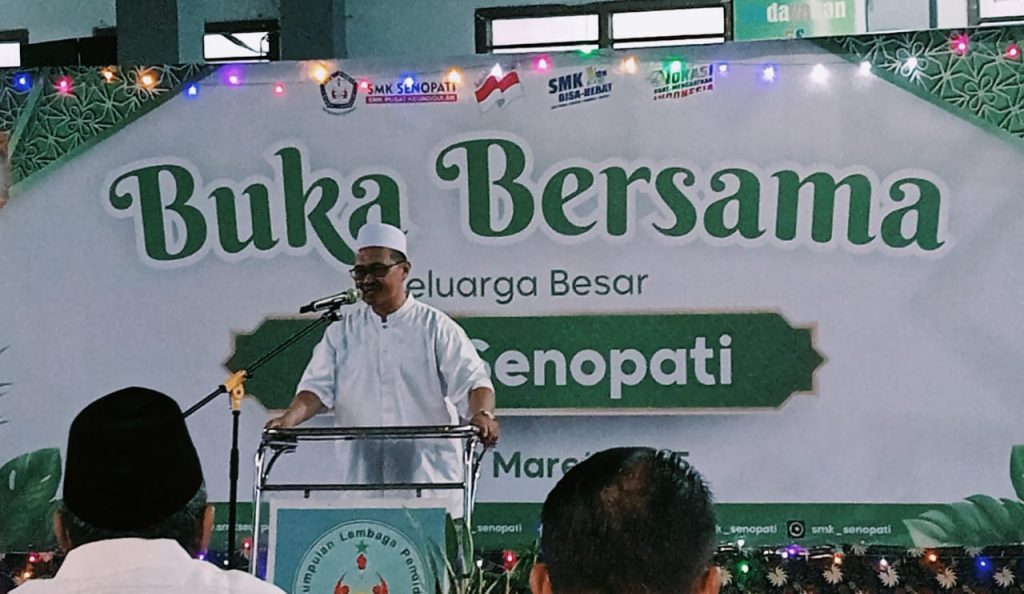 Setelah pembagian takjil, acara dilanjutkan dengan buka puasa bersama. Semua peserta duduk  di aula terbuka yang telah dihias dengan nuansa Ramadan, menciptakan suasana hangat dan penuh kekeluargaan. Sebelum berbuka, acara diawali dengan sambutan  oleh kepala sekolah dan ketua Perkumpulan Lembaga Pendidikan Senopati Erik Erlangga, SE., M.BA.