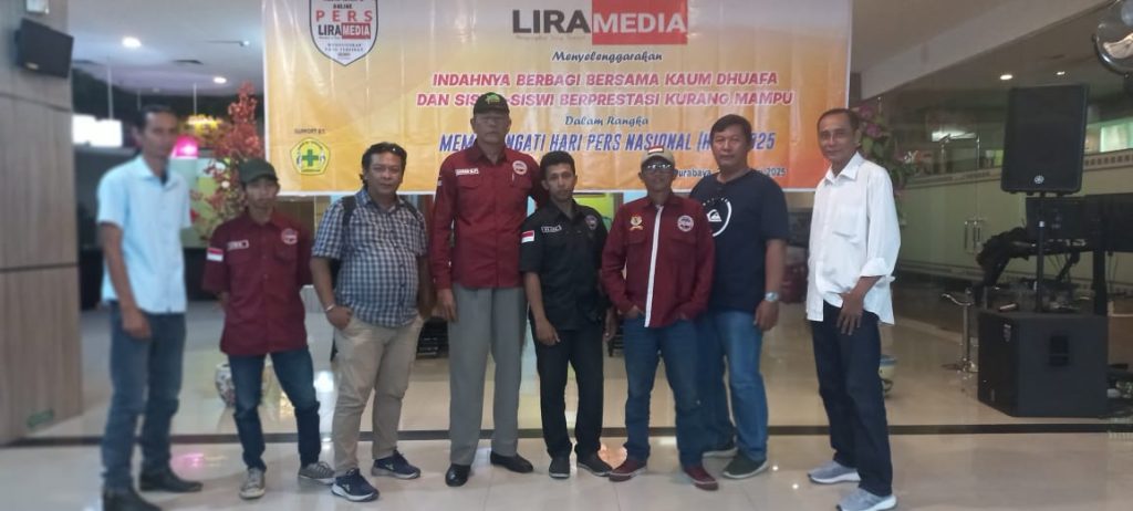 Surabaya, Liramedia.id – Kamis, 27 Februari 2025 pukul 09.00 wib Rekan-Rekan Wartawan Lira Media beserta Pimpinan Redaksi Satna peringati Hari Pers Nasional (HPN) 2025 laksanakan giat peduli sosial berikan Santunan Anak Yatim Piatu dan dhuafa di Hotel Fave Max Jalan Jenggolo no. 3 – 5 Surabaya.